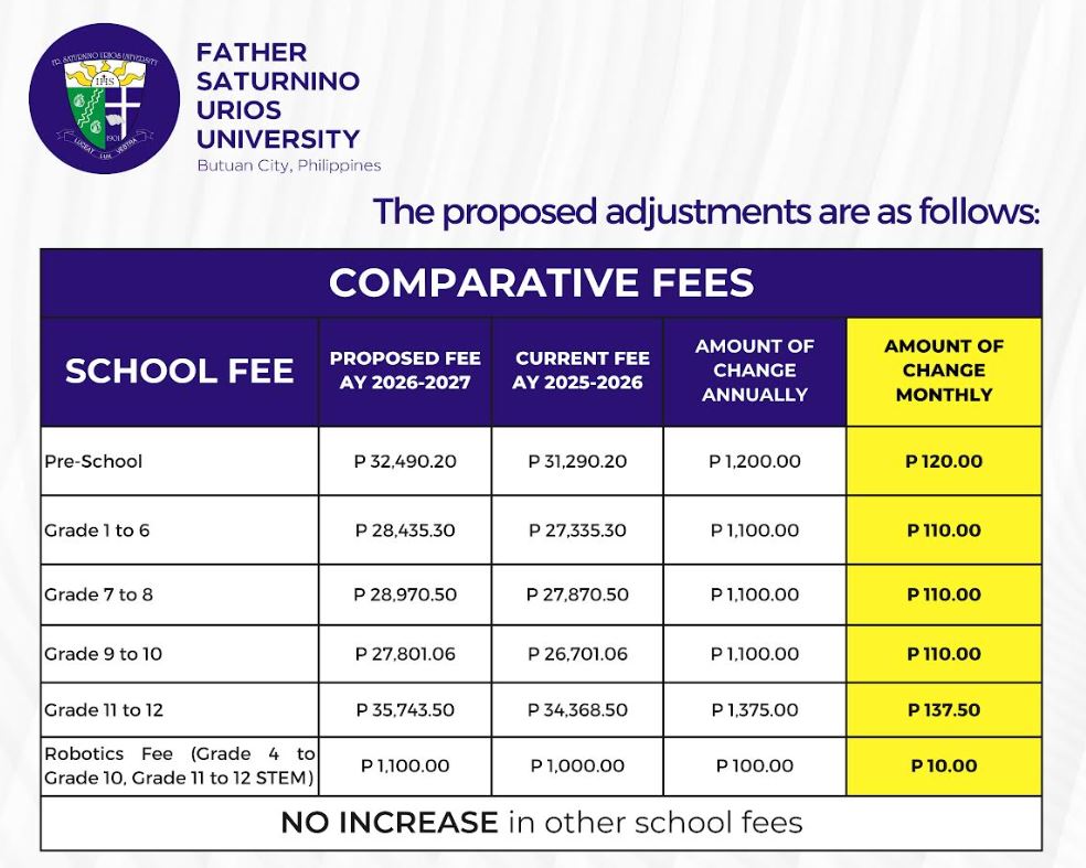 Proposed Change in Tuition and Other School Fees for Academic Year 2026-2027 in the Basic Education Department