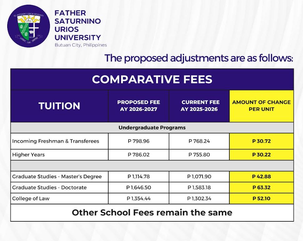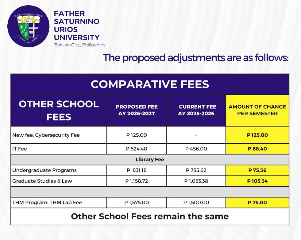 Proposed Change in Tuition and Other School Fees for Academic Year 2026-2027